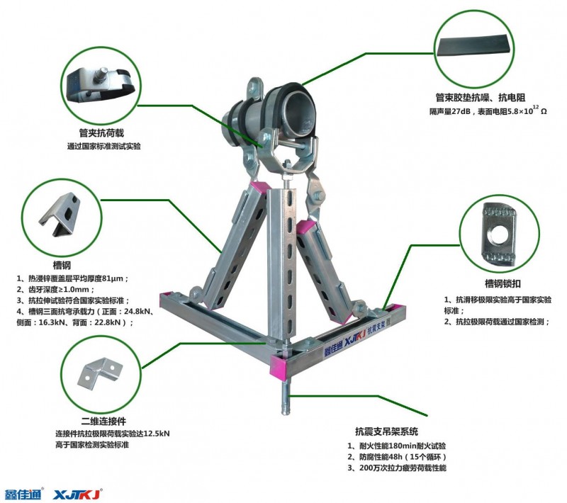 以荷載力學(xué)為基礎(chǔ),地震作用驗(yàn)算為核心,將管道、風(fēng)管、電纜橋架等機(jī)電設(shè)施牢固連接于已做抗震設(shè)計(jì)的建筑體,起到限制機(jī)電工程設(shè)施位移,控制設(shè)施振動(dòng),并將荷載傳遞至承載結(jié)構(gòu)上作用的各類組件或裝置。其抗震支撐的主要目的就是把地震所造成的生命與財(cái)產(chǎn)損失減少到最低程度。這類產(chǎn)品我們稱之為抗震支吊架。