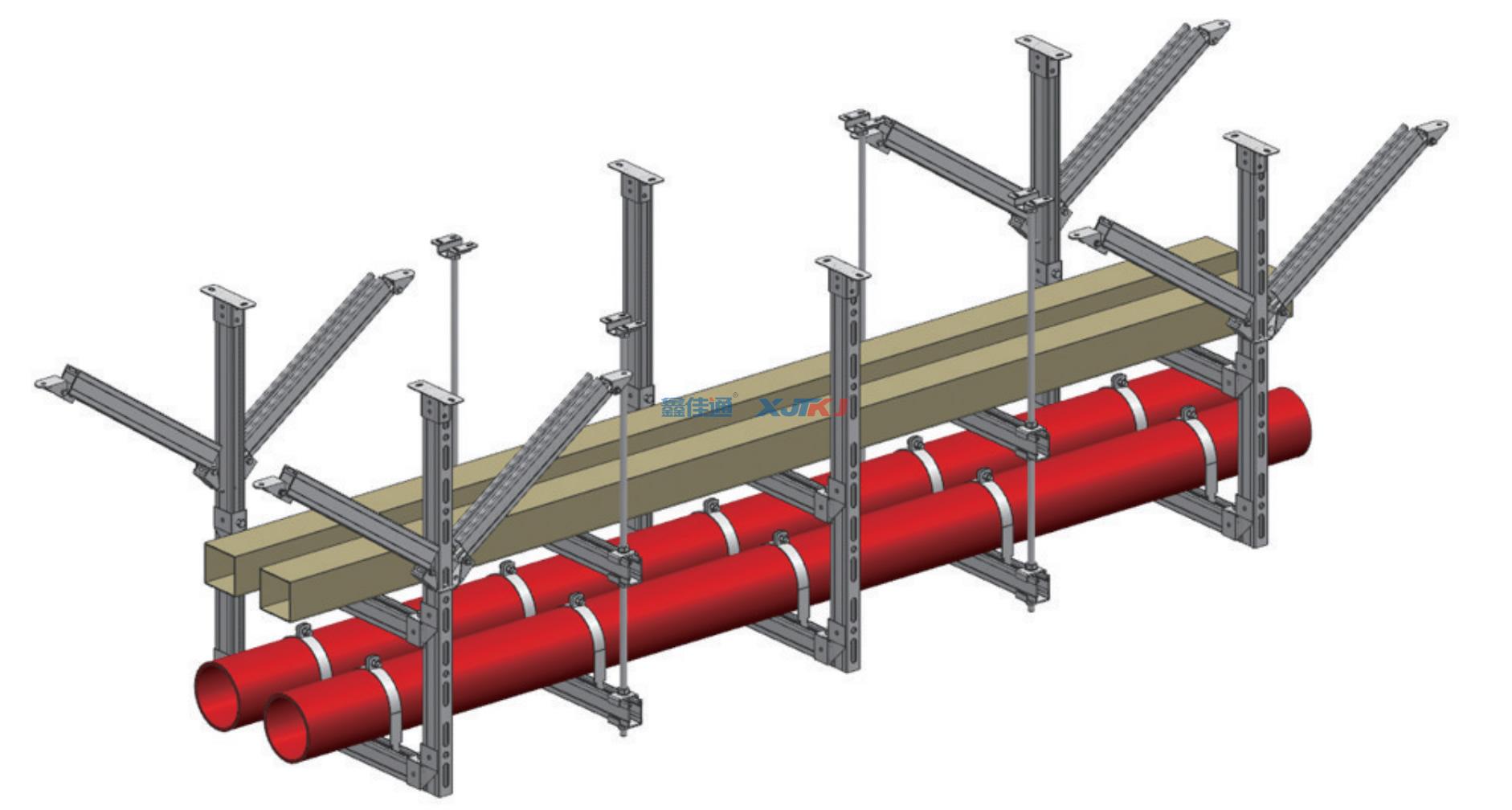 適用范圍: 組合式支吊架適用于有多種管線布置集中,而且空間有限的場所。特別是對于辦公大樓、酒店、賓館、商場等建筑工程的公共走道等管線集中的部位。