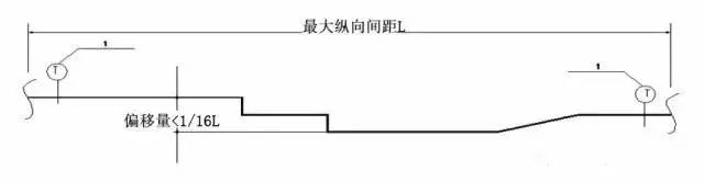 (3)剛性連接的水平管道,兩個(gè)相鄰的加固點(diǎn)允許縱向偏移,水管及電線套管不得大于最大側(cè)向支吊架間距的1/16,風(fēng)管、電纜梯架、電纜托盤和電纜槽盒不得大于其寬度的兩倍(見圖8)。