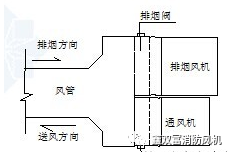 該系統(tǒng)通風(fēng)機(jī)出風(fēng)口設(shè)置防火閥,排煙機(jī)出風(fēng)口設(shè)置排煙閥,風(fēng)管中設(shè)置排煙閥(常開)。該系統(tǒng)排風(fēng)與排煙的方向相反。