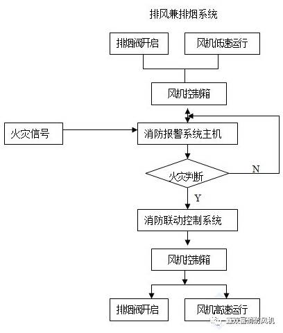 3、通風(fēng)與排煙共用一套風(fēng)管,分別設(shè)置通風(fēng)機(jī)和排煙風(fēng)機(jī)