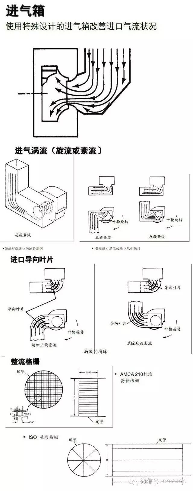 進(jìn)口風(fēng)管,進(jìn)口彎管,進(jìn)口箱,進(jìn)口渦流 (旋流或紊流〕,進(jìn)口導(dǎo)向葉片,整流器,封閉式 (箱形效應(yīng)〕,有障礙的進(jìn)口。