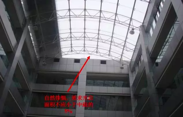 按規(guī)范應(yīng)設(shè)置排煙措施,但又不具備自然排煙條件的房間、走道、中庭。