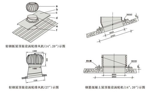 2、DWT-Ⅳ(無電機(jī))屋頂渦輪排風(fēng)機(jī)屋面安裝示圖說明